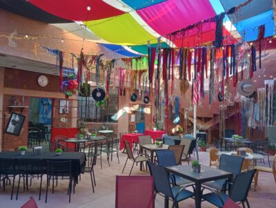 [Casa Arabe is located on Cinco de Mayo #1917, almost across the street from Asilo de Ancianos, close to Plazuela Zaragoza. Call for take-away orders: 910 3659. The restaurant is not handicap accessible, because of two steps at the entrance and no restrooms on the ground floor. However, tables and chairs can be placed on the front patio instead. Casa Arabe opens from Monday through Saturday from noon until 7 p.m. but if the food finishes, they might close earlier. Cash only, no credit cards accepted.]